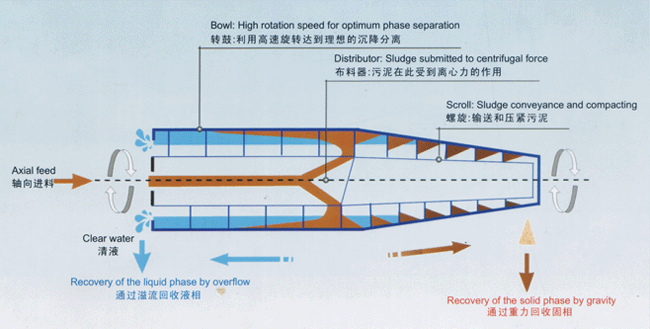 污泥離心脫水處理成套裝置(臥螺離心機),全稱:臥式螺旋卸料沉降離心機,是城市生活污水處理、自來水生產(chǎn)過程中的污泥處理、工農(nóng)業(yè)污水處理工程中的重要設(shè)備。