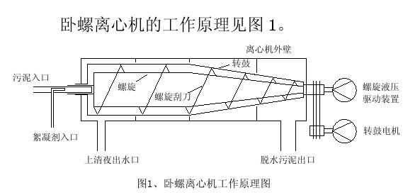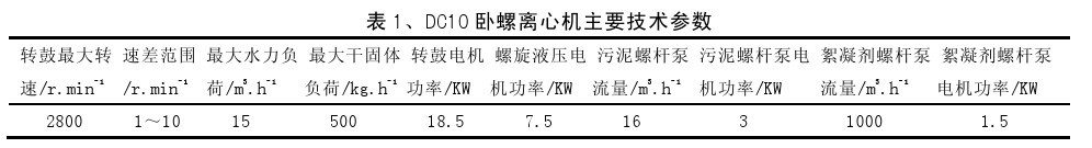 臥螺離心脫水機具有分離效果良好、工作效率高、使用管理維護簡單方便的特點,并且臥螺離心脫水機采用全封閉的結(jié)構(gòu),避免了帶式壓慮機存在的種種弊端(如現(xiàn)場環(huán)境惡劣、臭味大、大量使用絮凝劑和清洗水、設(shè)備體積大、日常使用維護麻煩),目前在污水處理、食品、醫(yī)藥、化工等領(lǐng)域的固液分離中得到廣泛的應(yīng)用,本研究根據(jù)生產(chǎn)實踐,探索了速差、工作壓力等控制條件對污泥脫水效果影響的變化規(guī)律,總結(jié)了使離心機的穩(wěn)定運行的調(diào)整方法。