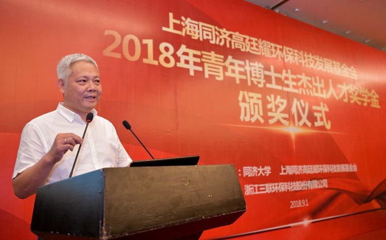 方守恩書記在致辭中代表同濟(jì)大學(xué)對獲獎的各位優(yōu)秀青年博士生表示祝賀,對給予此次活動大力支持的浙江省麗水市人民政府、麗水市恒力離心機(jī)械設(shè)備有限公司以及長期支持基金會不斷發(fā)展的江蘇維爾利環(huán)??萍脊煞萦邢薰颈硎局孕牡母兄x。他說,基于對生態(tài)文明建設(shè)和環(huán)境保護(hù)重要性的認(rèn)識,在高廷耀老校長的倡議下,同濟(jì)大學(xué)于2003年正式成立了上海同濟(jì)高廷耀環(huán)保科技發(fā)展基金會。十五年來,基金會始終不忘初心,積極致力于“培養(yǎng)新一代環(huán)保專業(yè)新型人才;促進(jìn)中國環(huán)保高新技術(shù)(產(chǎn)品)的研制和科技交流與發(fā)展”,為我國高級環(huán)保青年人才培養(yǎng)和環(huán)保產(chǎn)業(yè)可持續(xù)發(fā)展,發(fā)揮了積極的推動和引導(dǎo)作用。黨的十九大報告提出,實現(xiàn)“兩個一百年”奮斗目標(biāo)和中華民族偉大復(fù)興的中國夢,是要把我國建成富強(qiáng)民主文明和諧美麗的社會主義現(xiàn)代化強(qiáng)國。美麗中國建設(shè),需要各級政府、企業(yè)和高校持續(xù)不懈的努力,更需要青年一代切實承擔(dān)起應(yīng)有的歷史責(zé)任。
