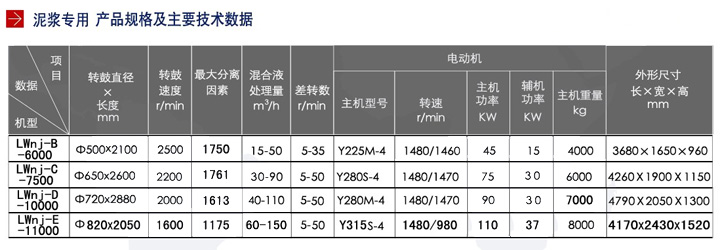 麗水市恒力離心機(jī)械設(shè)備有限公司生產(chǎn)的“LWnj泥漿專(zhuān)用離心機(jī)”系列產(chǎn)品。目前已有型號(hào)規(guī)格為:LWnj-B-6000型、LWnj-C-7500型、LWnj-D-10000型、LWnj-E-11000型四種規(guī)格。
