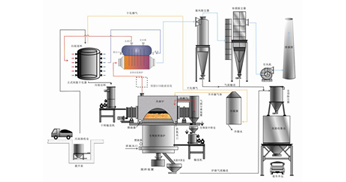 4.熱風(fēng)爐產(chǎn)生的煙氣(或生產(chǎn)廢熱煙氣)經(jīng)調(diào)溫后進(jìn)入轉(zhuǎn)子干化器,對(duì)污泥進(jìn)行加熱干化。